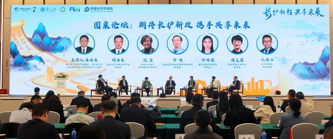 南开大学朱铭来教授、日本女子大学沈洁教授分享了国内及国际长期护理保险领域的研究成果与实践经验。在随后的圆桌论坛对话中,围绕老龄化问题,从产学研政用等多个维度展开了深入探讨,共同探寻应对老龄化挑战的巧妙思路与创新策略。
