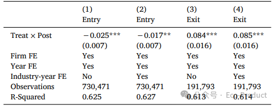 表8 新安江ECI对企业进入与退出模式的影响