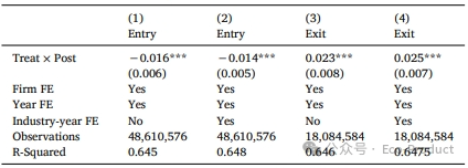 表8表明,ECI实施后,上游地区的新企业进入率显著下降,而现有企业的退出率显著上升。这印证了命题2,表明更严格的监管通过提高合规成本,不仅改变了在位企业的行为,更从源头阻止了新污染企业进入并迫使效率低下者退出,实现了结构性减排。
