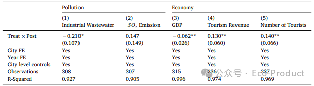 本研究采用双重差分模型评估新安江ECI的政策效应。基准回归模型设定如下: