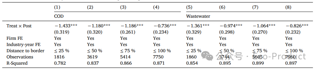 研究首先通过三重差分模型(表6)证实了这一点:Treat × Post × Distance to border的系数显著为正,而Treat × Post的系数显著为负。这表明,在整体减排的背景下,企业距离省界越远,政策的减排效应会随之衰减。
