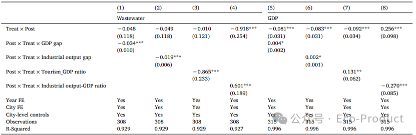表4 新安江ECI对企业排放强度和产出的影响