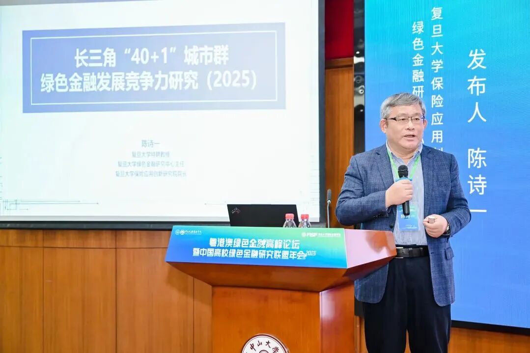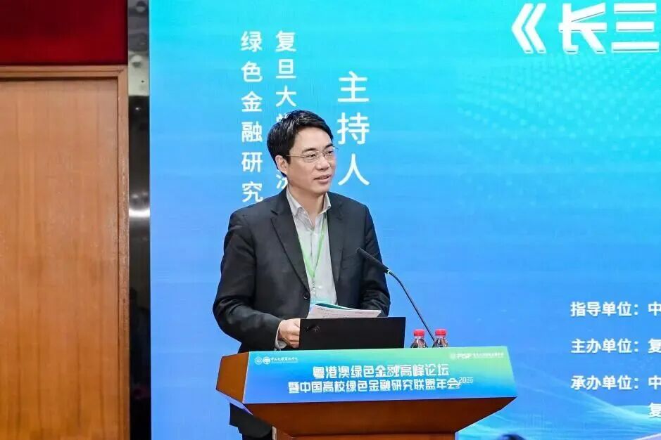 复旦大学陈诗一教授致辞,他回顾高校绿色金融联盟发展并致谢,强调绿色金融对绿色低碳转型、人与自然和谐共生现代化至关重要。2023年中央金融工作会议将其纳入“五篇大文章”,凸显战略地位与投融资支持导向。