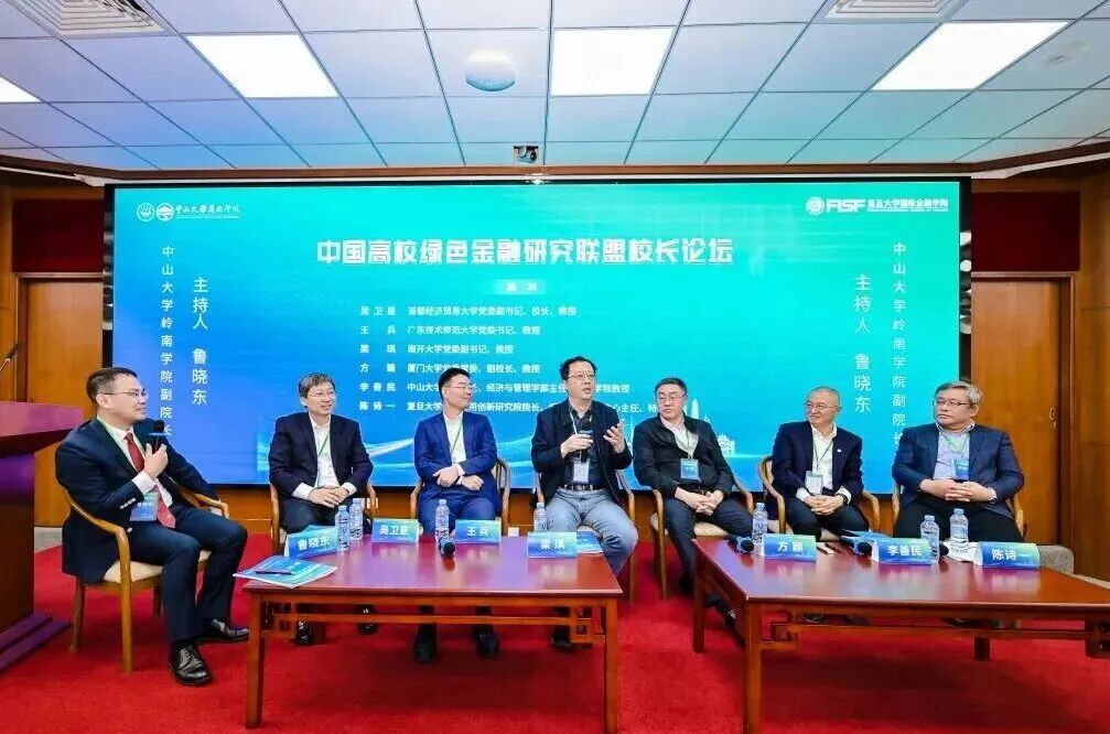 中山大学岭南学院副院长鲁晓东教授主持中国高校绿色金融研究联盟校长论坛。论坛邀请了首都经济贸易大学吴卫星教授、广东技术师范大学王兵教授、南开大学梁琪教授、厦门大学方颖教授、中山大学李善民教授、复旦大学陈诗一教授作为嘉宾,围绕论坛主题展开圆桌交流。校长论坛聚焦绿色发展、教育人才培养、政策与技术创新等核心议题,涵盖 ESG 标准制定、绿色信贷、碳排放核算等工作进展,展现高校绿色经济实践成果。