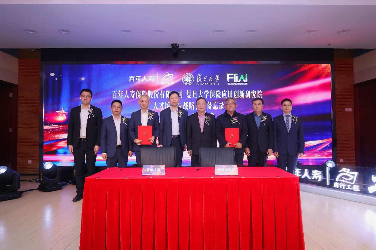 2026年3月20日,保险应用创新研究院与百年人寿人才培养与战略合作备忘录签订仪式在复旦大学邯郸校区成功举办。复旦大学保险应用创新研究院(以下简称“研究院”)执行理事长孔庆伟,院长陈诗一,百年人寿执行董事、总裁戴文浩,副总裁冯金涛,等双方领导出席活动,共同见证校企双方在人才培养与战略合作上的深化升级。